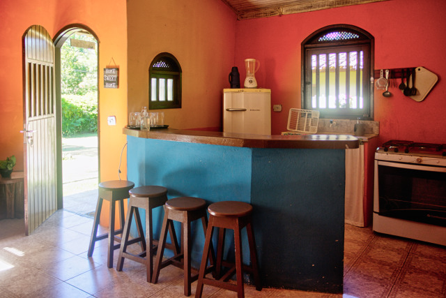 Sobrado, 140 m², sala, cozinha, 1 quarto e 1 suite, varanda, área de serviço c/tanque. Churrasqueira própria. TV LED e ventilador na sala, AR nos quartos e utensílios completos. Estacionamento privativo para 1 veículo.