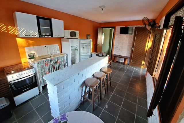 Sobrado, 140 m², sala, cozinha, 1 quarto e 1 suite, varanda, área de serviço c/tanque. Churrasqueira própria. TV LED e ventilador na sala, AR nos quartos e utensílios completos. Estacionamento privativo para 1 veículo.